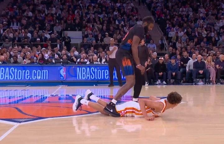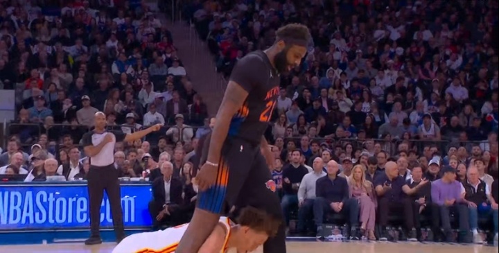 这明显故意的!米切罗掩护推倒丹尼尔斯 然后跨人越过后者头顶吃T