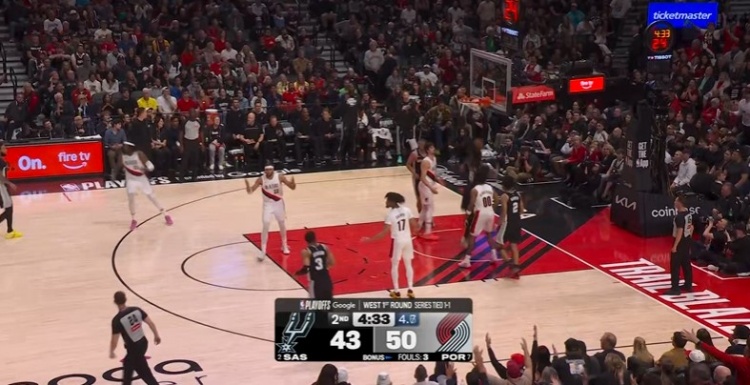 双脚都离地了!卡斯尔起跳落地裁判没吹 开拓者目送后者突破扣篮
