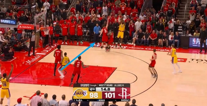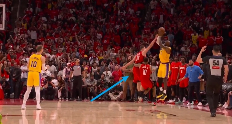 小贾末节最后“帮”詹姆斯做了一个移动掩护 挡住了申京的封盖