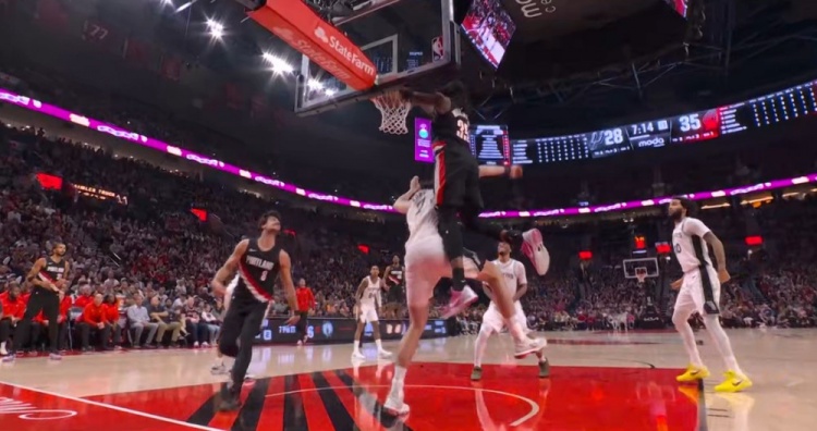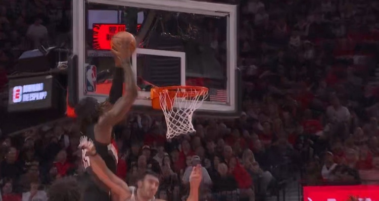 势大力沉!阿夫迪亚助攻罗威空接暴扣 开拓者领先9分打停马刺