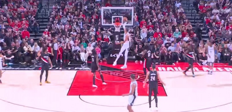 势大力沉!阿夫迪亚助攻罗威空接暴扣 开拓者领先9分打停马刺