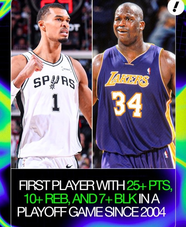 4月27日讯 马刺114-93逆转开拓者,系列赛大比分来到3-1。此役,文班亚马出战34分19秒,17投9中,三分4中1,罚球8中8,爆砍27分11板3助4断7帽的恐怖数据,正负值+28。据统计,文班在季后赛单场至少25分10篮板7盖帽,自2004年的奥尼尔(次轮对阵马刺G3、奥尼尔得到28分15篮板5助攻8盖帽)后首人。