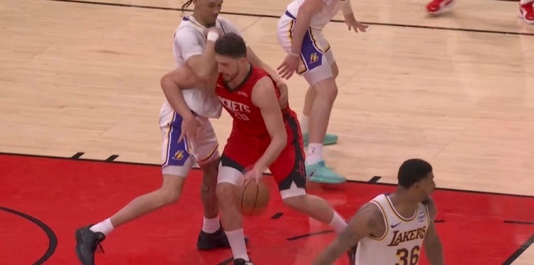 火箭中锋申京强攻海斯造成杀伤,随后2罚1中,截至发稿前罚球4中2。