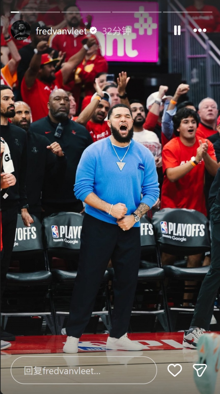 气势不能输!范弗里特INS晒自己在场边为队友呐喊助威的照片