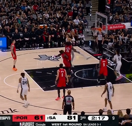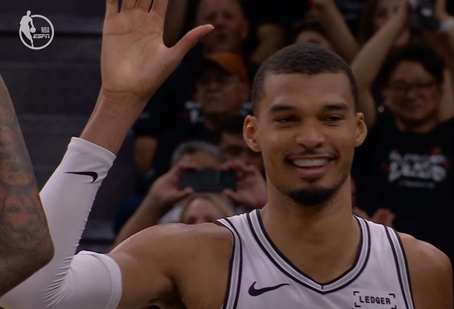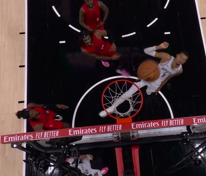 你告诉我怎么玩?文班丝滑转身过掉霍勒迪 空中对抗罗威打板2+1!