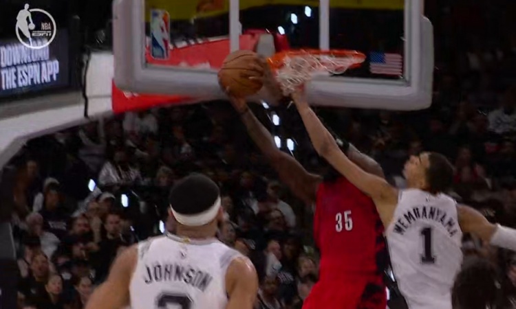 太勇猛了!罗威底线切入不惧文班亚马补防直接双手背扣得分