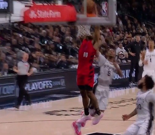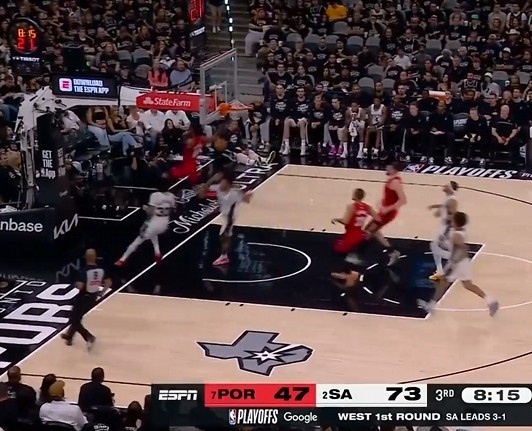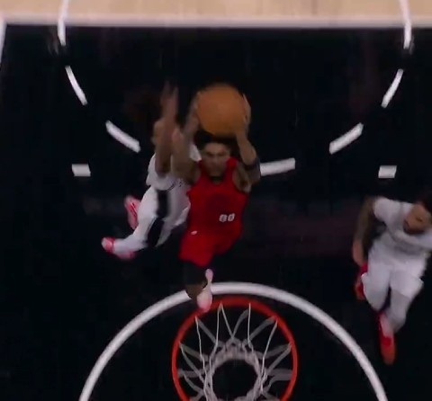 太勇猛了!罗威底线切入不惧文班亚马补防直接双手背扣得分
