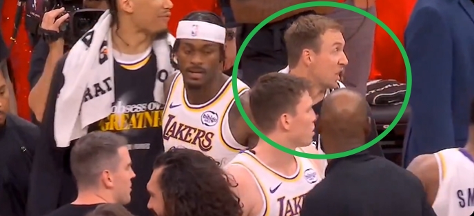 04月29日讯 NBA官方宣布,肯纳德因对比赛裁判使用不当言论,被处以2.5万美元罚款。湖人媒体挖出肯纳德被罚原因,原来是在比赛结束后,双方球员、裁判聚集到了一起,肯纳德在人群中对着裁判一通输出,从嘴型可以看出他说了一句“你太TM烂了”。GIF-肯纳德输出在人群中,詹姆斯和范德彪都在拦着队友们,让他们平静下来不要搞事。