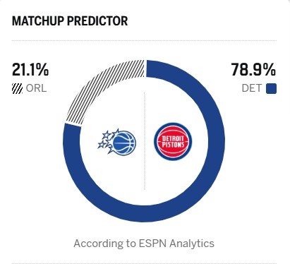 ESPN预测本场比赛胜率:活塞78.9%,魔术21.1%。