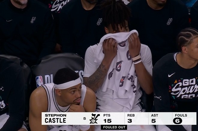 提前下班了!卡斯尔篮板球犯规 个人六次犯满离场