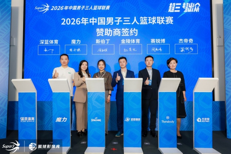 联赛商务合作版图再拓新篇,新赛季迎来多位全新合作伙伴,包括官方赞助商魔力以及官方供应商赛锐博(Therabody)、杰帝奇。魔力作为中国国家队官方运动饮料,此次再度携手中国三人篮球,以专业补给助力每一次热血交锋,让赛场活力全开,见证无限魔力。赛锐博(Therabody)将为强对抗、快节奏的超三赛场提供全面运动恢复设备支持。中国软塑运动地板品牌杰帝奇,为每一位超三球员提供专业、安全、稳定的赛场体验。同时在本次发布会上,超三联赛继续携手斯伯丁和金陵体育共赴新周期,斯伯丁将继续为超三联赛提供专业三人篮球比赛、训练用球,通过其专业篮球产品生产、制造工艺持续为超三联赛助力。金陵体育作为超三联赛官方指定篮架供应商,凭借其过硬的产品质量、专业的服务将在新赛季为超三联赛保驾护航。