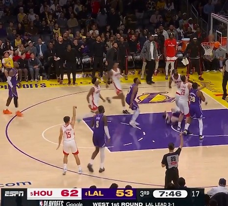 动作不小!伊森篮下推倒里夫斯 被吹一级恶意犯规