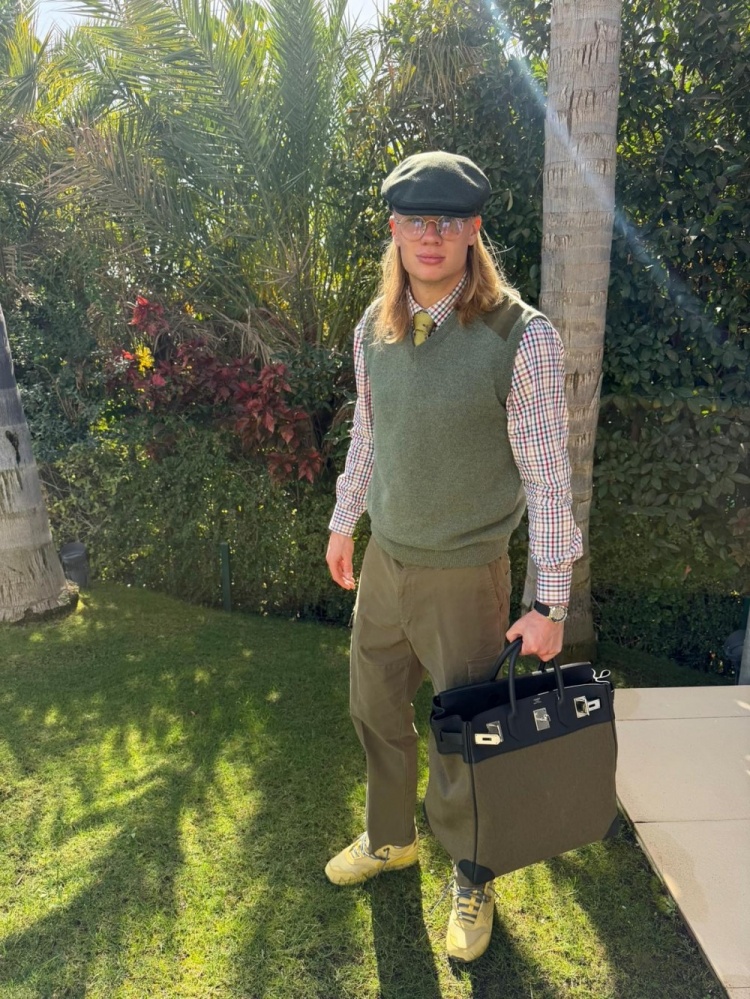 10月14日讯 哈兰德更新社媒动态,晒出穿搭照片。哈兰德社媒晒出穿搭照片,背景是郁郁葱葱的绿色植被,哈兰德头戴绿色帽子,身上穿着绿色马甲,内搭格子衬衫,下身穿着橄榄绿裤子,手拎黑绿色帆布包包。哈兰德的整体装扮与自然融为一体,配文:“迷彩。”