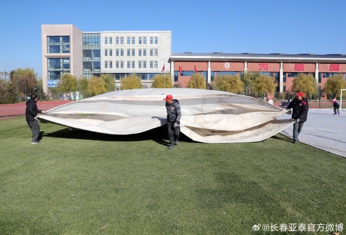 作为中超版图最北端的城市,如何攻克严寒难关,保障天然草坪安全地度过寒冬,始终是亚泰基地草坪养护团队的工作重点。今年,受气候影响,长春地区较往年同期明显偏低,为避免低温对草坪造成损伤,基地草坪养护团队将“盖被”工作提前启动,因为每年春天,天然草能否如期返青,返青后的生长,都需要进行细心周到的呵护。