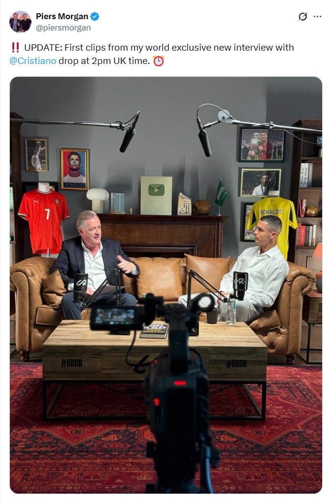 11月03日讯 著名主持人皮尔斯摩根发文预热表示,C罗全球独家专访的首个片段将于北京时间今晚10点放出。摩根上周曾透露,C罗第二次接受了他的全球独家专访,并且表示这是他“一生中最私密、最坦诚的采访”。【相关】爆了!时隔3年来袭!摩根:下周推出!C罗一生最私密、坦诚的采访摩根:C罗80分钟专访将有超多猛料!包含许多私人话题,不容错过