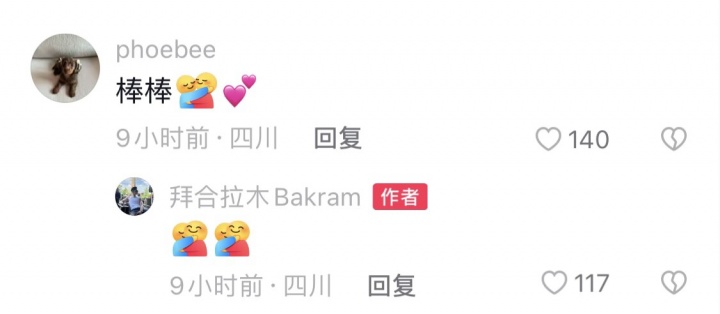 昨晚进行的熊猫杯第二轮比赛,中国U22男足2-0击败韩国U22,拜合拉木梅开二度,打入一记很有想象力的脚后跟破门。拜合拉木在社媒发帖庆祝双响,评论区一位女性网友留言“棒棒”,获拜合拉木亲切回复。此前,该网友曾晒出现场观战新鹏城比赛的照片,拜合拉木留言:来看谁了