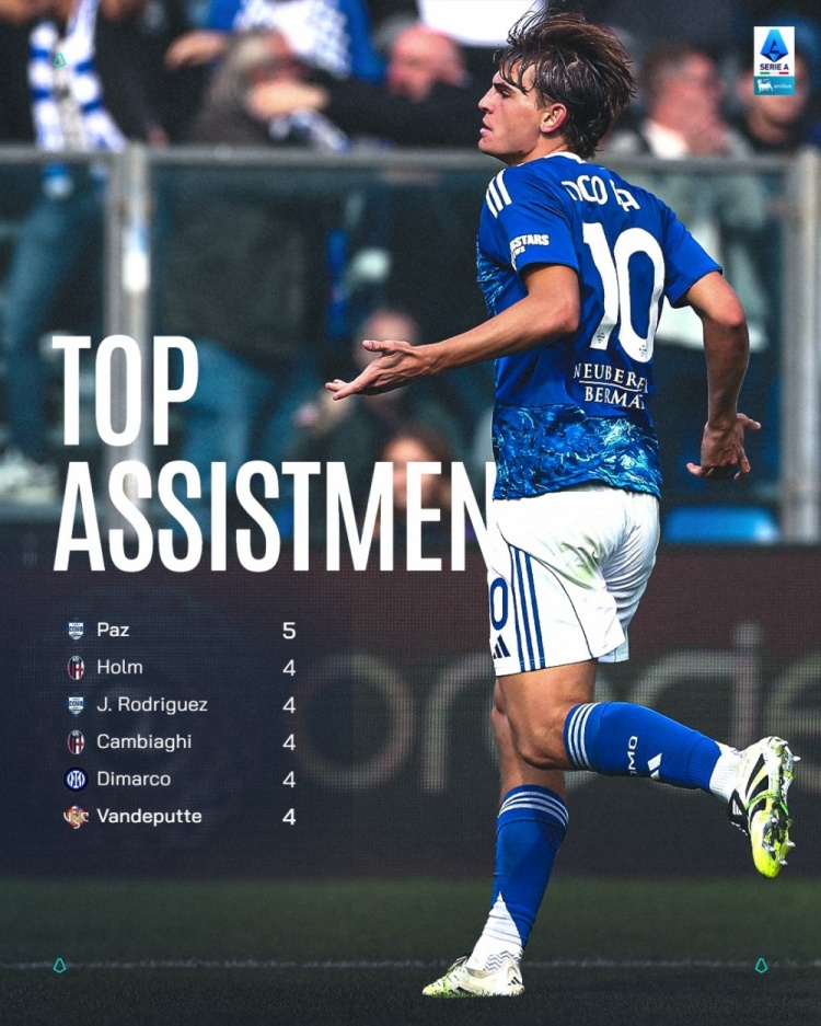11月29日讯 意甲第13轮比赛,尼科·帕斯送出助攻,帮助科莫主场2-0击败萨索洛。尼科·帕斯本赛季意甲打进5球,并列排名意甲射手榜首位,助攻5次,登顶意甲助攻榜,意甲官方社媒晒出射手榜、助攻榜海报,对他表示祝贺。