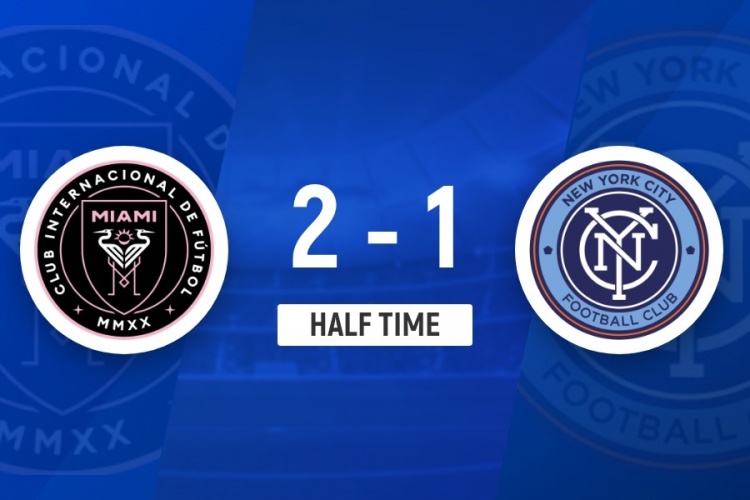 半场-迈阿密国际2-1纽约城 阿连德头顶脚踢双响阿尔巴助攻