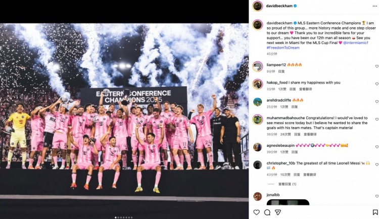 贝克汉姆社媒:祝贺迈阿密赢得东部联盟冠军,下周总决赛见