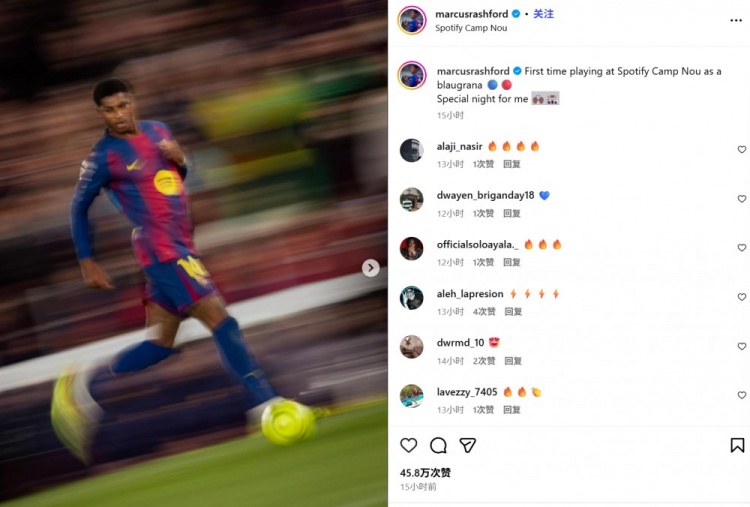 拉什福德社媒:作为巴萨球员在诺坎普首秀,对我而言是特别的一夜