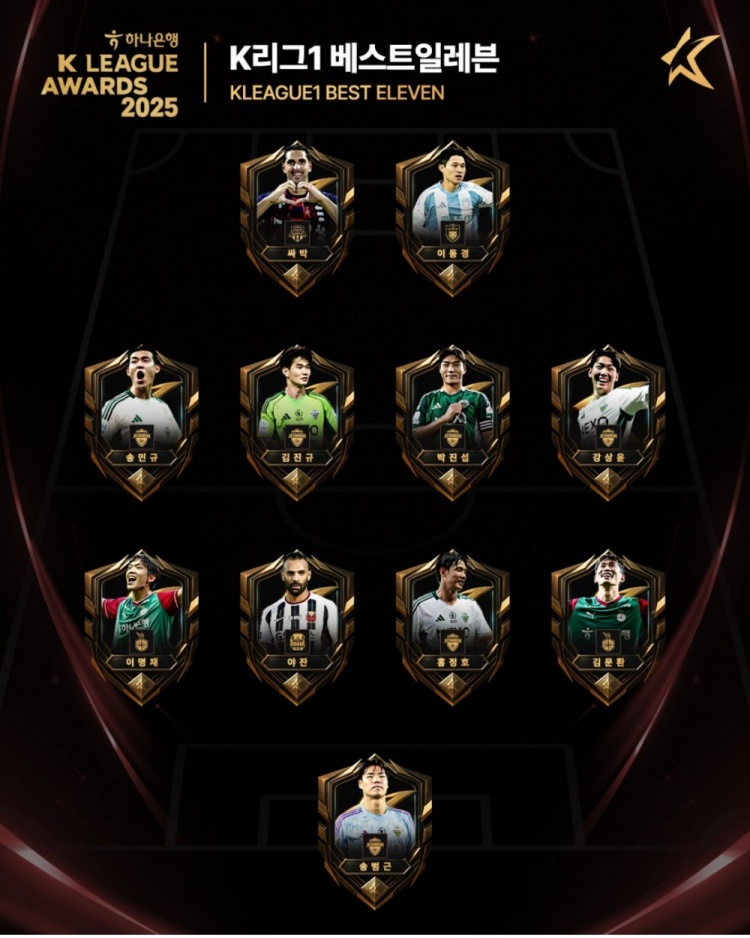 今日K联赛官方公布了本赛季最佳球员、最佳教练、最佳青年球员奖项获得者以及最佳十一人阵。具体如下: