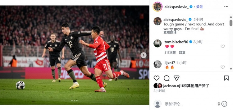 因伤被换下,帕夫洛维奇社媒:大伙不必担心,我身体没问题
