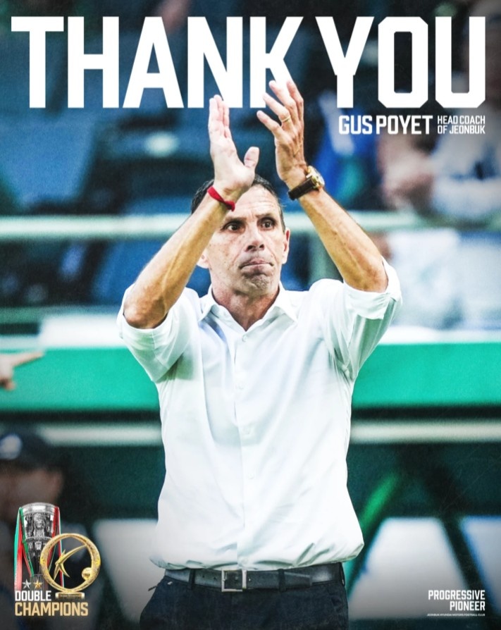 全北现代官方写道:波耶特结束了他在全北现代的教练生涯,他与我们携手合作,帮助全北现代实现新的飞跃,并带领我们迈向新篇章,我们祝愿波耶特教练在未来的事业中一切顺利。