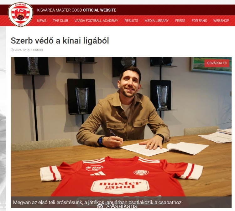 匈牙利甲级联赛球队小瓦尔道(Kisvárda FC)官方宣布与青岛海牛外援尼古拉·拉德曼诺瓦茨(Nikola Radmanovac)签约。拉德曼诺瓦茨2024年7月从俄罗斯联赛转投青岛海牛,为青岛海牛出场了42次。球员合同本月底到期自由身离队,转会将在明年初匈牙利窗口打开后完成。