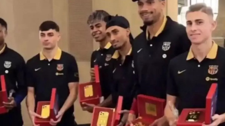 类似豪礼在巴萨更衣室里其实并不新鲜。去年巴萨全队前往沙特阿拉伯参加西班牙超级杯时,每位球员也收到了一部黄金手机,那次是由International Data Group(IDG)公司赞助的。