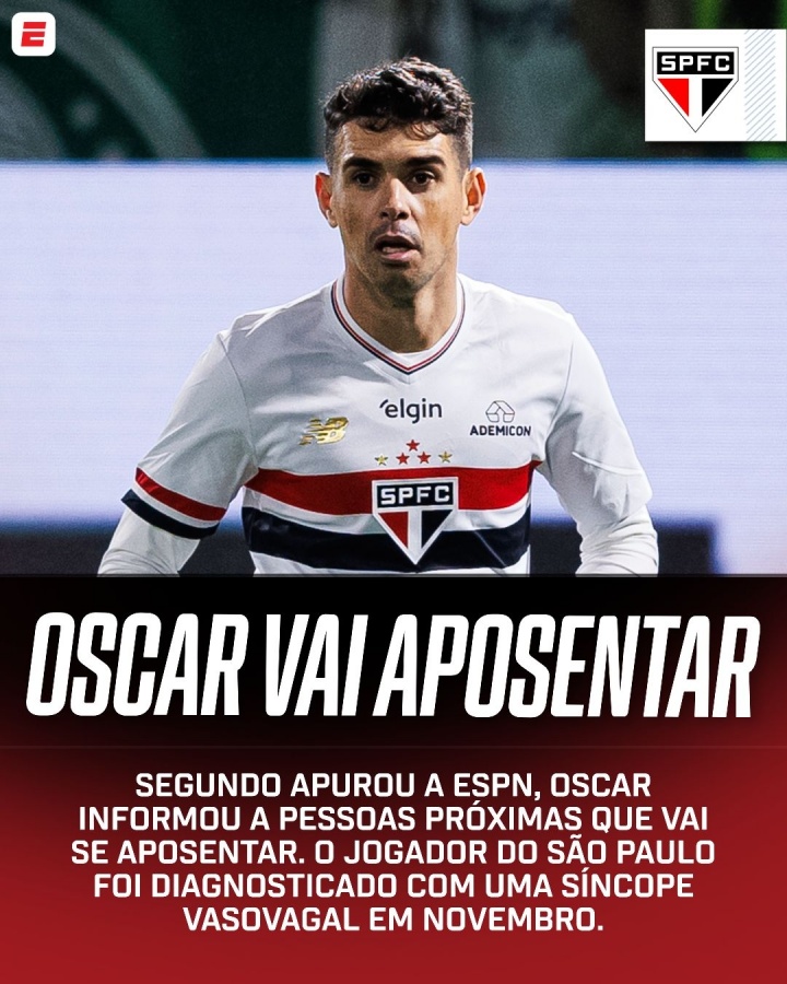 ESPN获悉,圣保罗俱乐部原本计划与球员会面,以了解这位中场球员的未来情况。奥斯卡上周曾身着训练服出现在俱乐部。