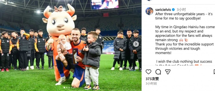 12月15日讯 今晚,萨里奇更新社媒,向自己效力了三年的青岛海牛告别。现年35岁的波黑外援萨里奇,共代表海牛出战82场,贡献11个进球和11次助攻。萨里奇在社媒告别写道:三年难忘的时光——是时候说再见了!我在青岛海牛的旅程已画上句号,但我对球迷们的敬意与感激将永远炽热