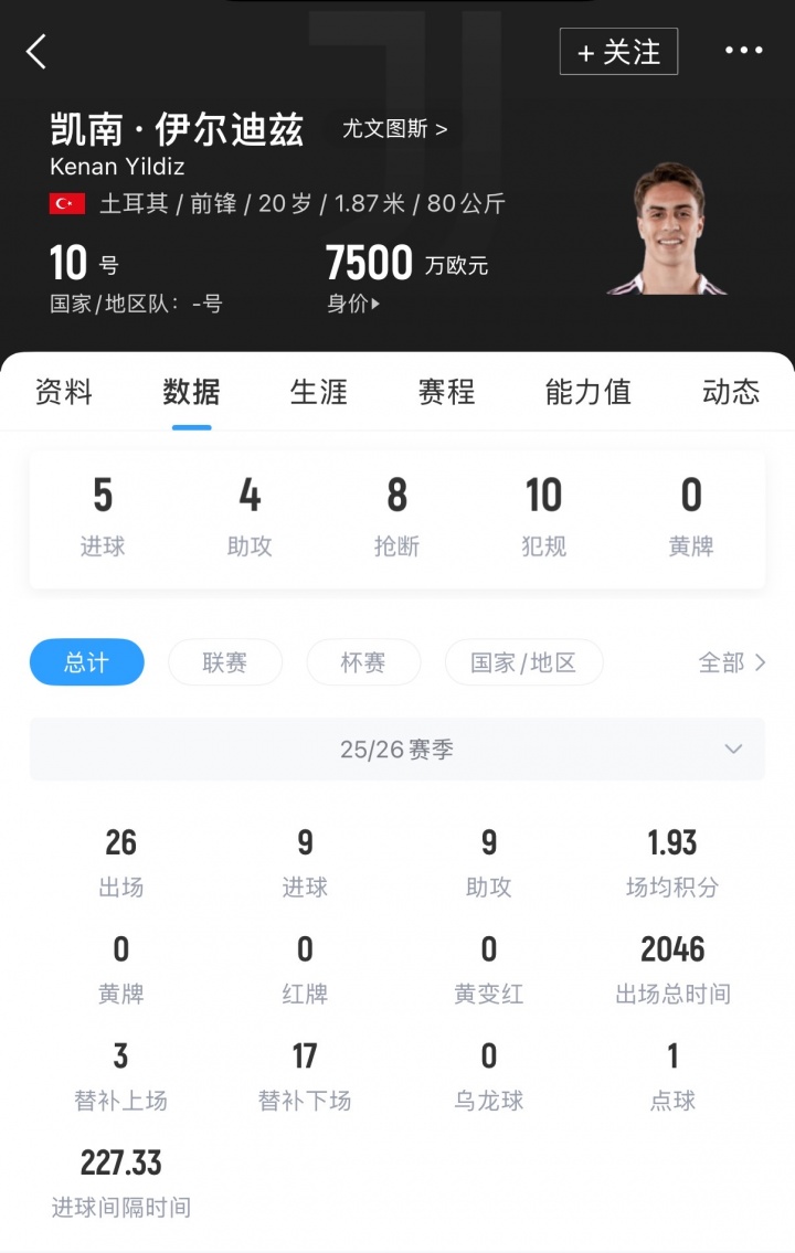 此外,如果尤文没有获得欧冠资格,他有可能被推向市场(球员出售所得可全部计算为财政收益),其薪资对各大豪门而言都将是可以承受的。但若尤文顺利获得欧冠资格,续约将是合理的,而弗拉霍维奇的潜在离队,也能释放出2300万欧元的薪资预算。2026年初,或许也能看到伊尔迪兹的竞技水平达到新的高度。