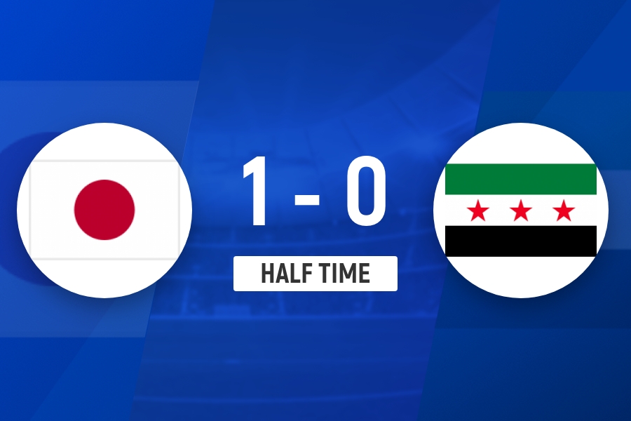 半场战罢,日本U23队暂1-0叙利亚U23队。