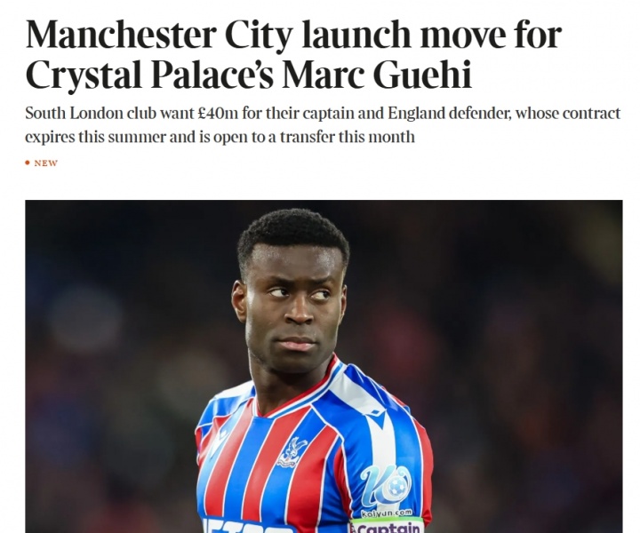 01月16日讯 据英媒《泰晤士报》名记乔伊斯消息,曼城已经对格伊展开行动,水晶宫希望收到4000万镑转会费。报道称,曼城已经采取行动,而格伊也愿意在冬窗离开球队。曼城已经与水晶宫展开谈判,并且即将与格伊就个人条款达成一致。水晶宫希望能够收到4000万镑的转会费。而格伊与水晶宫的合同仅剩半年。报道还表示,曼城愿意支付格伊作为自由球员本应得到的薪资,并且愿意超过其他球队的报价,目前尚不清楚格伊是否会加入本周水晶宫的英超比赛名单。