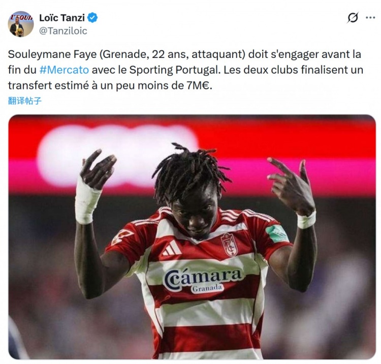 1月16日讯 据记者Loïc Tanzi报道,格拉纳达边锋费伊预计将加盟葡萄牙体育。Loïc Tanzi透露,费伊预计将在冬窗关闭之前加盟葡萄牙体育,两家俱乐部正在敲定这笔转会交易,转会费预计略低于700万欧元。费伊现年22岁,去年以60万欧转会费从贝蒂斯加盟格拉纳达,本赛季出战21场比赛2球6助,德转身价150万欧元。