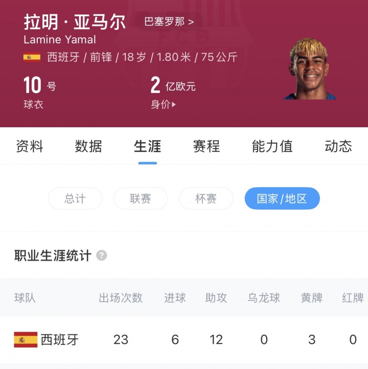 01月26日讯 昨晚,西甲第21轮,巴萨在主场3-0战胜皇家奥维耶多,亚马尔在本场打入1球。算上这粒进球,亚马尔迄今为止,进球+助攻已经达到100粒,包括在俱乐部为巴萨贡献82粒进球,以及为西班牙国家队贡献18个进球。亚马尔俱乐部参与进球数亚马尔国家队参与进球数