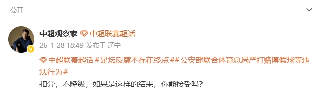 媒体人“中超观察家”暗示:扣分,不降级,如果是这样的结果,你能接受吗?