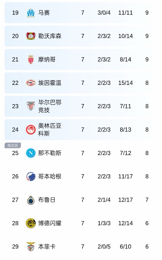 01月29日讯 欧冠小组赛第7轮结束后,马赛9分、0净胜球排名第19位,本菲卡6分、-4净胜球排名第29位。最后一轮风云突变。马赛0-3不敌布鲁日,最终积分位9分、-3净胜球。本菲卡4-2绝杀皇马,最终积分位9分、-2净胜球。如果本菲卡没有打入第四球,马赛将凭借进球数的优势晋级,但最终本菲卡凭借1个净胜球的优势晋级淘汰赛附加赛。
