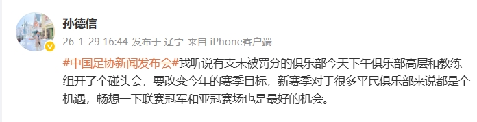 01月29日讯 足协正式公布了“假赌黑”专项整治行动受处罚的俱乐部名单。津门虎、申花被罚10分,中超共9队被罚分,总计13家职业俱乐部被罚分。评论员孙德信写道:“我听说有支未被罚分的俱乐部今天下午俱乐部高层和教练组开了个碰头会,要改变今年的赛季目标,新赛季对于很多平民俱乐部来说都是个机遇,畅想一下联赛冠军和亚冠赛场也是最好的机会。 ”