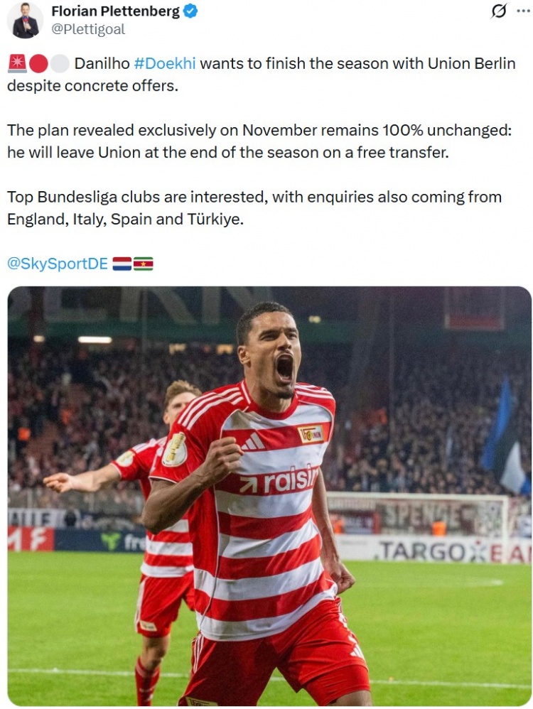 1月31日讯 据德天空记者Florian Plettenberg报道,尽管收到了多份报价,但多基希望在赛季结束前继续为柏林联合效力。报道称多基的计划一直没有发生改变,他将在赛季结束后以自由身离开柏林联合。来自德甲的豪门对他表示出兴趣,同时也有来自英格兰、意大利、西班牙和土耳其的球队询问他的情况。多基现年27岁,是一名荷兰后卫,本赛季19场德甲打进4球。