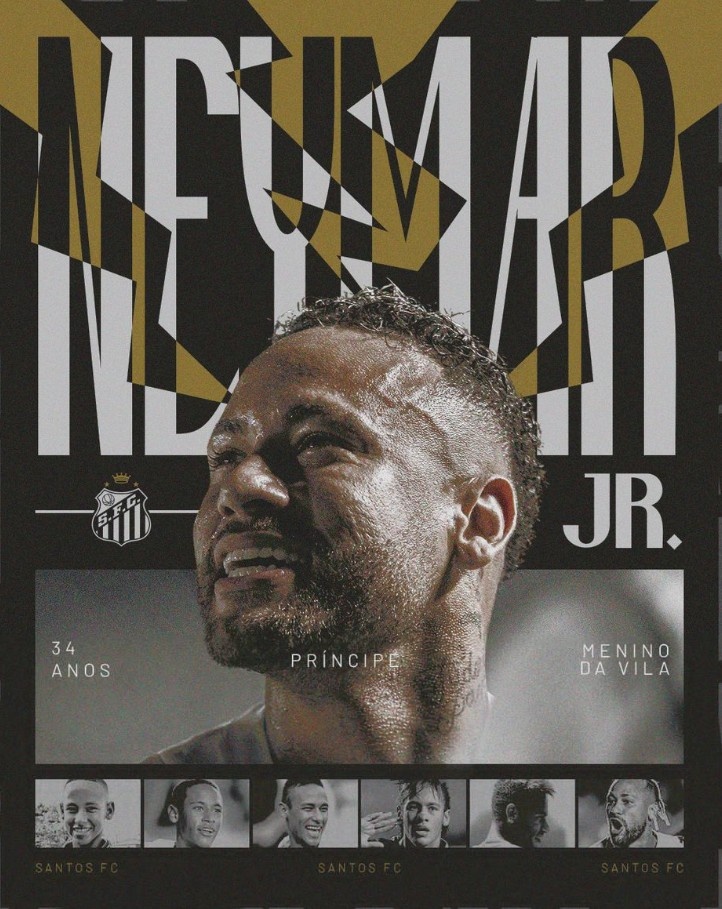 桑托斯官推晒海报祝内马尔34岁生日快乐,出场260场打进150球
