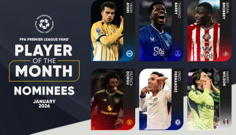2月5日讯 PFA(英格兰职业球员协会)官方公布1月英超最佳球员候选,具体如下:阿亚里(布莱顿)2球2助攻多尔古(曼联)2球1助攻恩佐(切尔西)3球1助攻哈里·威尔逊(富勒姆)3球布罗比(桑德兰)3球巴里(埃弗顿)3球