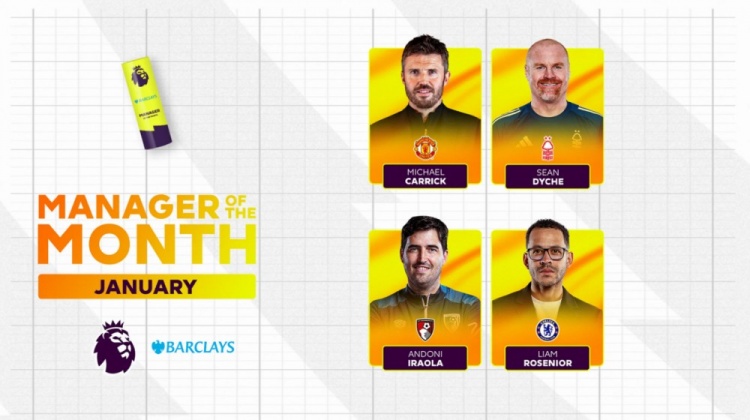 2月5日讯 英超官方公布1月份最佳主帅候选,具体如下:卡里克(曼联):2战2胜,净胜球+3戴奇(诺丁汉森林):4战2胜1平1负,净胜球+1伊劳拉(伯恩茅斯):5战3胜1平1负,净胜球+3罗塞尼尔(切尔西):3战3胜,净胜球+5本赛季此前月最佳主帅:8月:斯洛特(利物浦)9月:格拉斯纳(水晶宫)10月:阿莫林(曼联)11月:马雷斯卡(切尔西)12月:埃梅里(阿斯顿维拉)