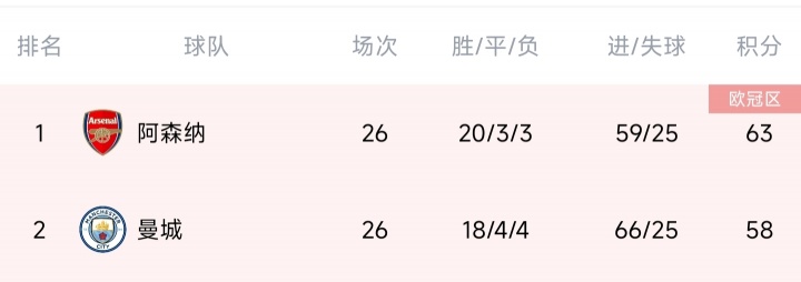 02月13日讯 英超第26轮战罢,阿森纳本轮1-1战平布伦特福德,积分优势减少到4分。22/23赛季同期,英超26轮后阿森纳曾5分领跑。但当时球队从第30轮开始崩盘,4轮不胜+直接交战1-4不敌曼城,最后丢冠。当时的曼城冲刺阶段几乎全胜,只平了1场(末轮0-1不敌布伦特福德时已经夺冠,不计入统计)。作为前车之鉴,阿森纳目前完全不能松懈,英超还剩12轮,变数还很多。
