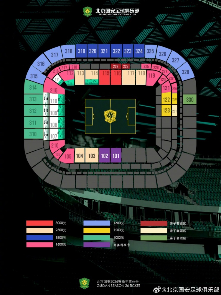 2月28日讯 北京国安俱乐部公布了《2026赛季主场赛事年票方案》。