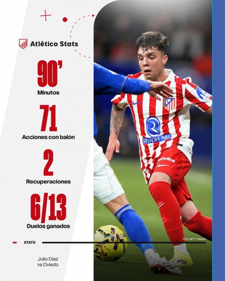 21岁的胡里奥·迪亚兹说道:“这个夜晚我永远不会忘记,这是每个马竞孩子的梦想,我今天的表现要感谢我的队友们,能穿上这件球衣是一种荣幸。”