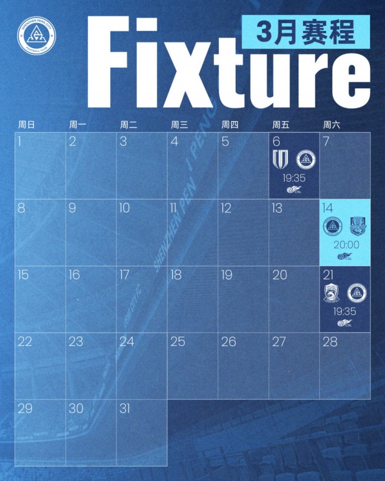 深圳新鹏城2026赛季首个比赛月赛程出炉