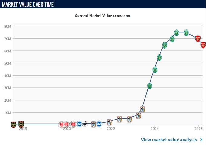 03月09日讯 今日德转更新英超球员身价,阿森纳前锋约克雷斯身价下跌500万,至6500万欧。去年夏天,约克雷斯以6690万欧转会费加盟阿森纳,出战38场比赛,贡献15球2助,但身价已经两连跌,从7500万欧跌至6500万欧。
