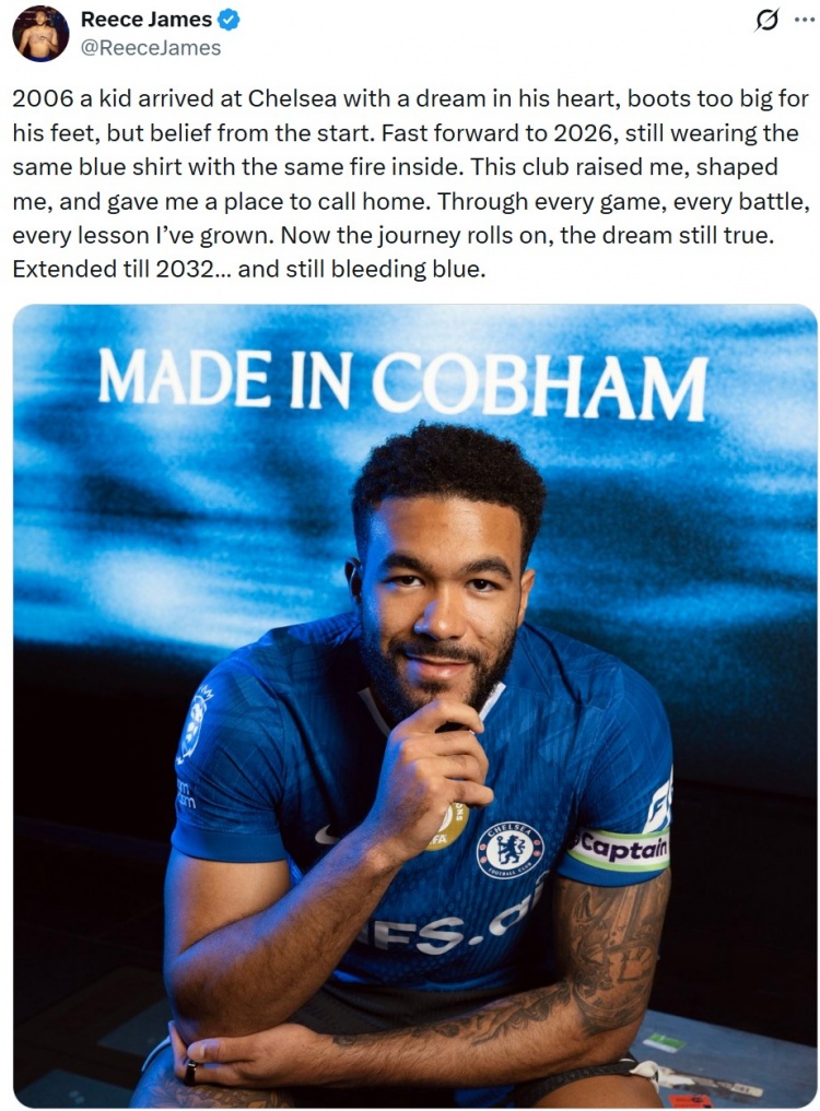3月13日讯 切尔西正式与队长里斯·詹姆斯续约,新合同至2032年。里斯·詹姆斯也在社媒发文写道:“2006年,一个怀揣梦想的孩子来到了切尔西,脚上的球鞋对他来说太大,但从一开始他就充满了信念。时光来到2026年,他依然穿着那件蓝色球衣,内心的热情依旧如初。这个俱乐部养育了我,塑造了我,并给了我一个可以称之为家的地方。在每一场比赛、每一次战斗、每一次学习中,我都不断成长。如今旅程仍在继续,梦想依旧未变。我与球队合同延长至2032年……心中依旧流淌着蓝色的血液。”