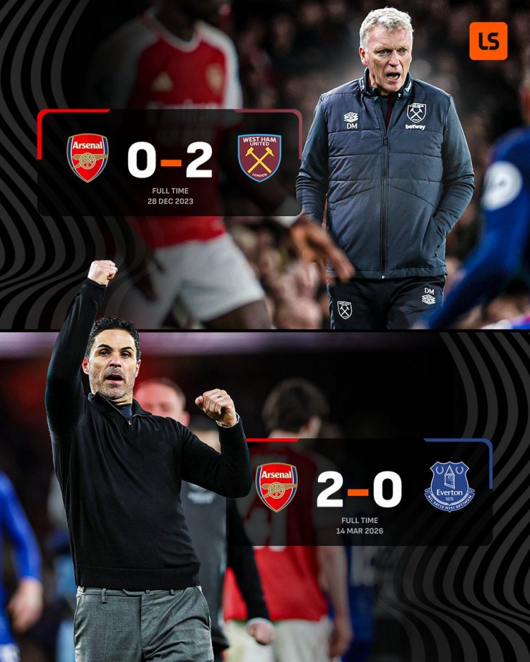 3月15日讯 英超第30轮比赛,阿森纳在酋长球场以2-0的比分战胜埃弗顿。枪手主帅阿尔特塔和埃弗顿主帅莫耶斯有着师徒之情,前者曾在后者执教的埃弗顿踢球。2023年底,执教西汉姆联的莫耶斯率队前往酋长球场,他们以2-0的比分战胜枪手,让对手的争冠之路越发艰难,这也是莫耶斯最近一次造访酋长球场。如今,徒弟战胜师傅,还了一个2-0。